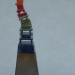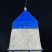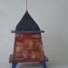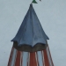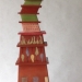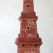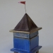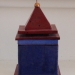 Toren van keramiek afgewerkt met blauw glazuur. Dak van de toren bruin-rood.